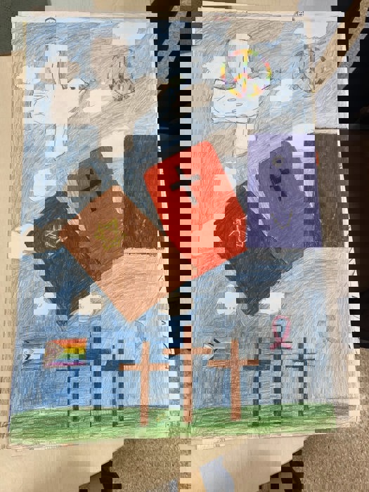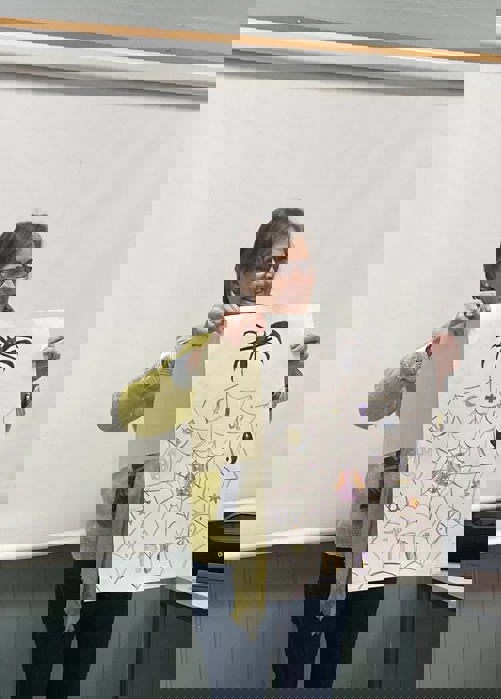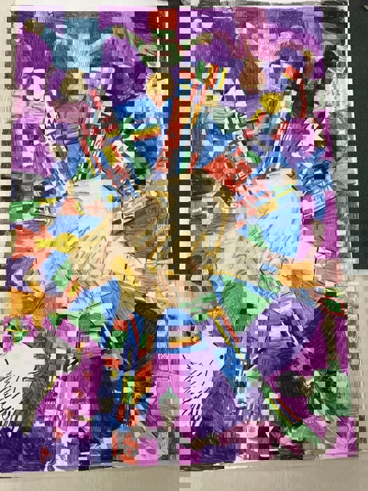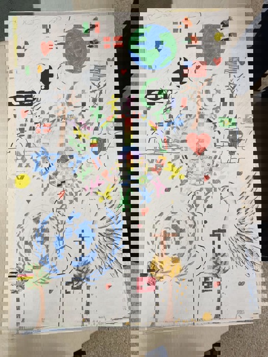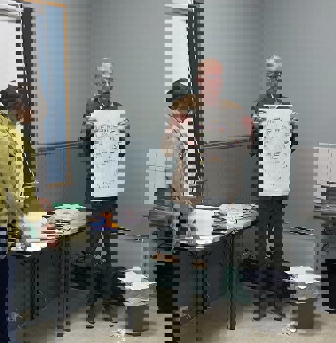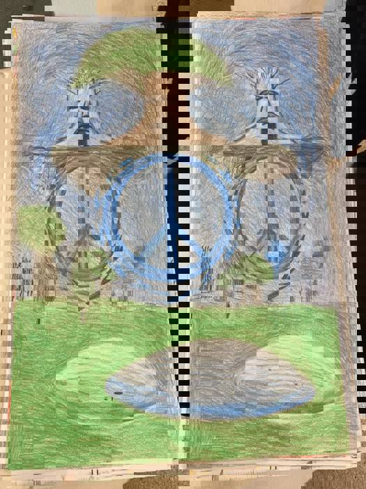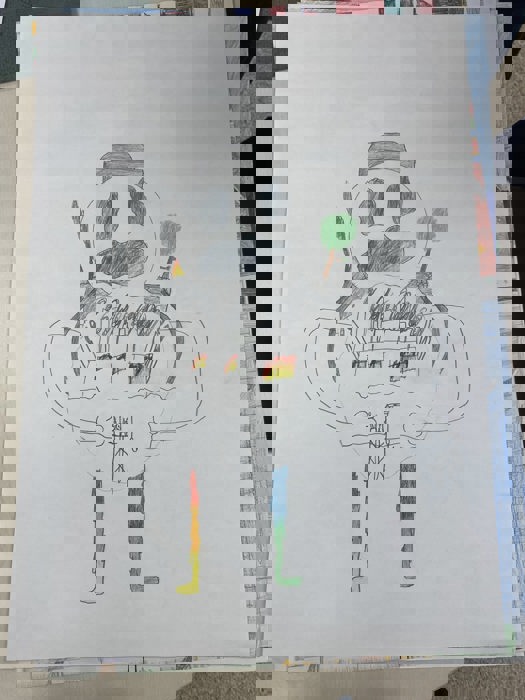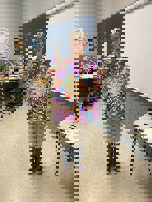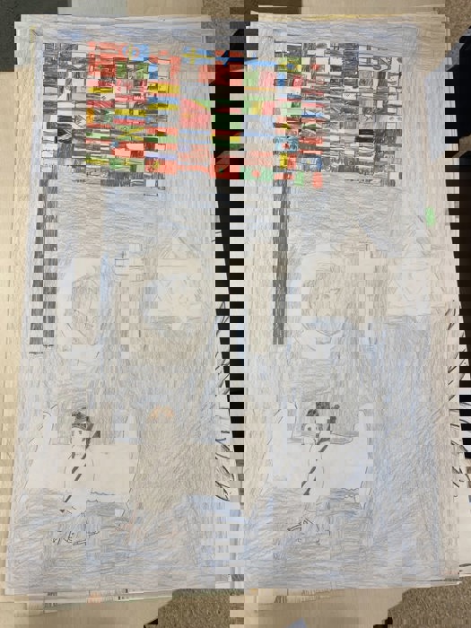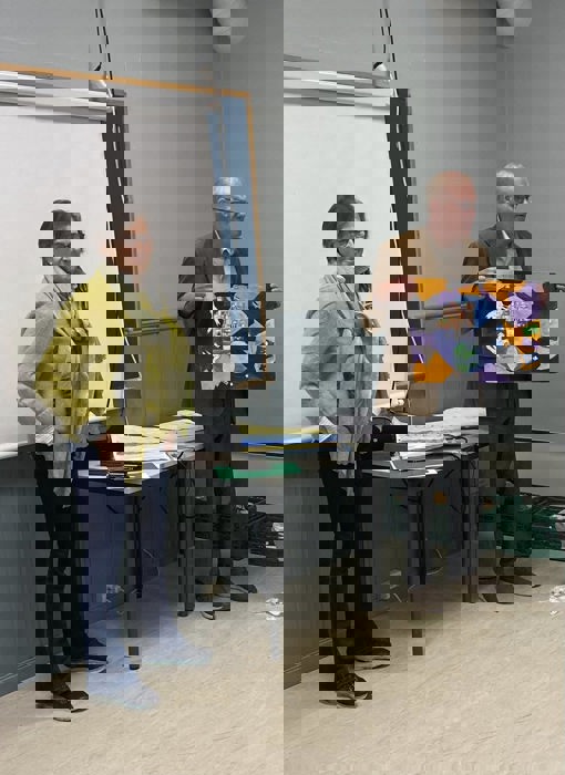 Reidar Finsrud med de to beste tegningene i Lions Sone 5. Follo regionen.
